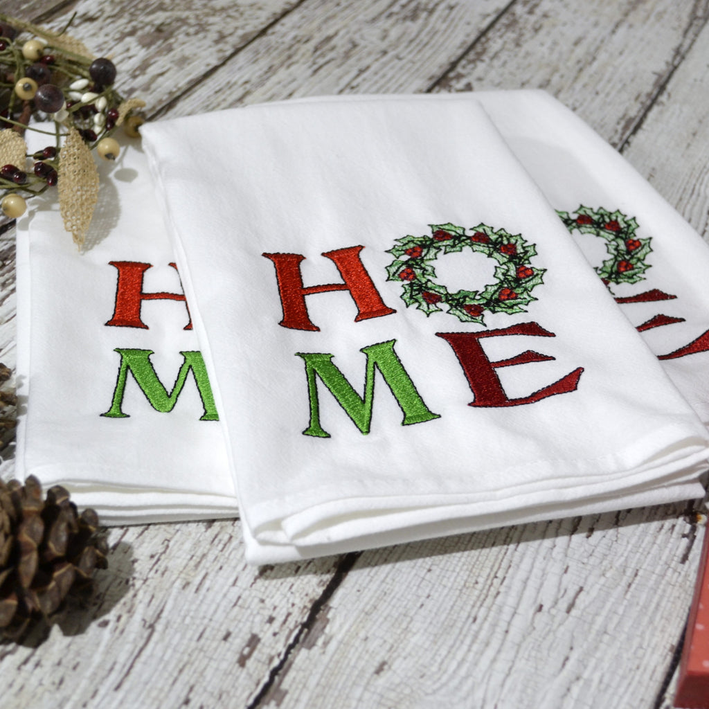 ●1 embroidered 100% Cotton pre-shrunk "HOME wreath" flour sack towel
